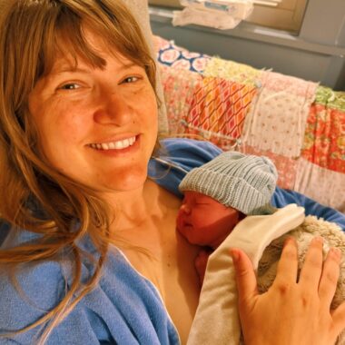 At 6pm she checked me on the couch and said chipperly, “Oh look! You’re at seven and very stretchy. I’m going to call the other midwife.” I was in happy shock.